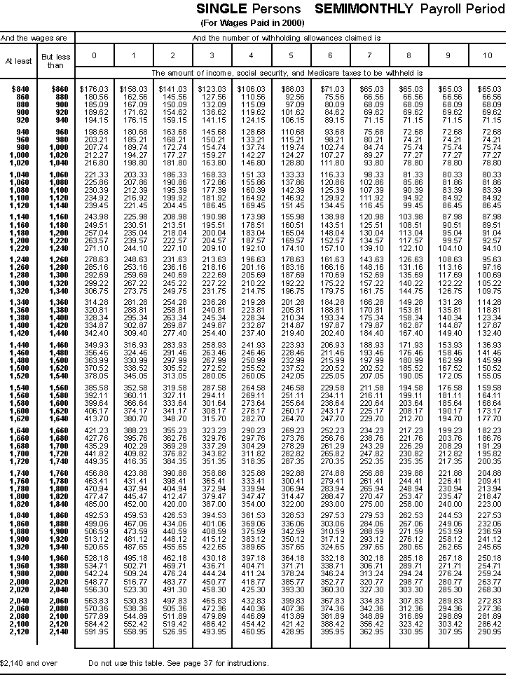 - Single Persons - SemiMonthly, Paid Wages $840 - $2140
