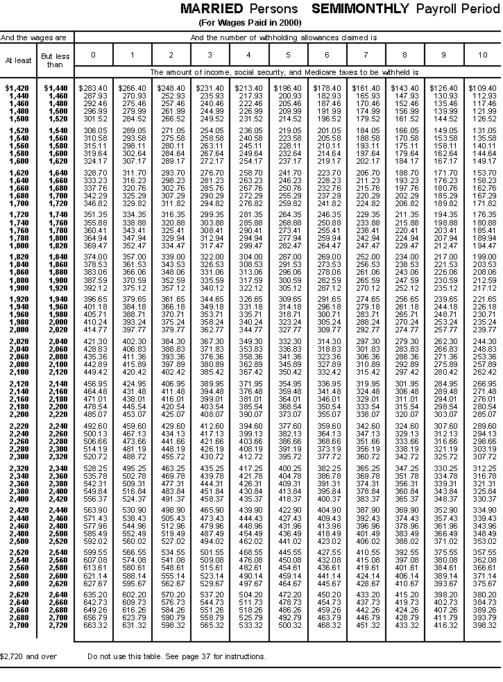 - Married Persons - SemiMonthly, Paid Wages $1420 - $2720