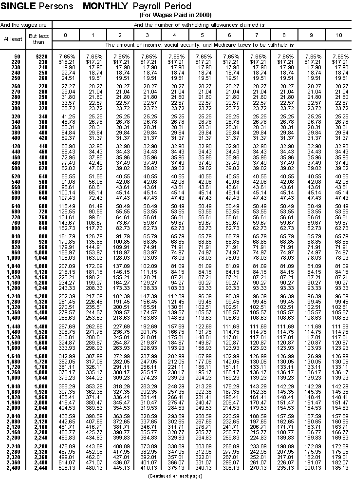 - Single Persons - Monthly, Paid Wages $0 - $2440