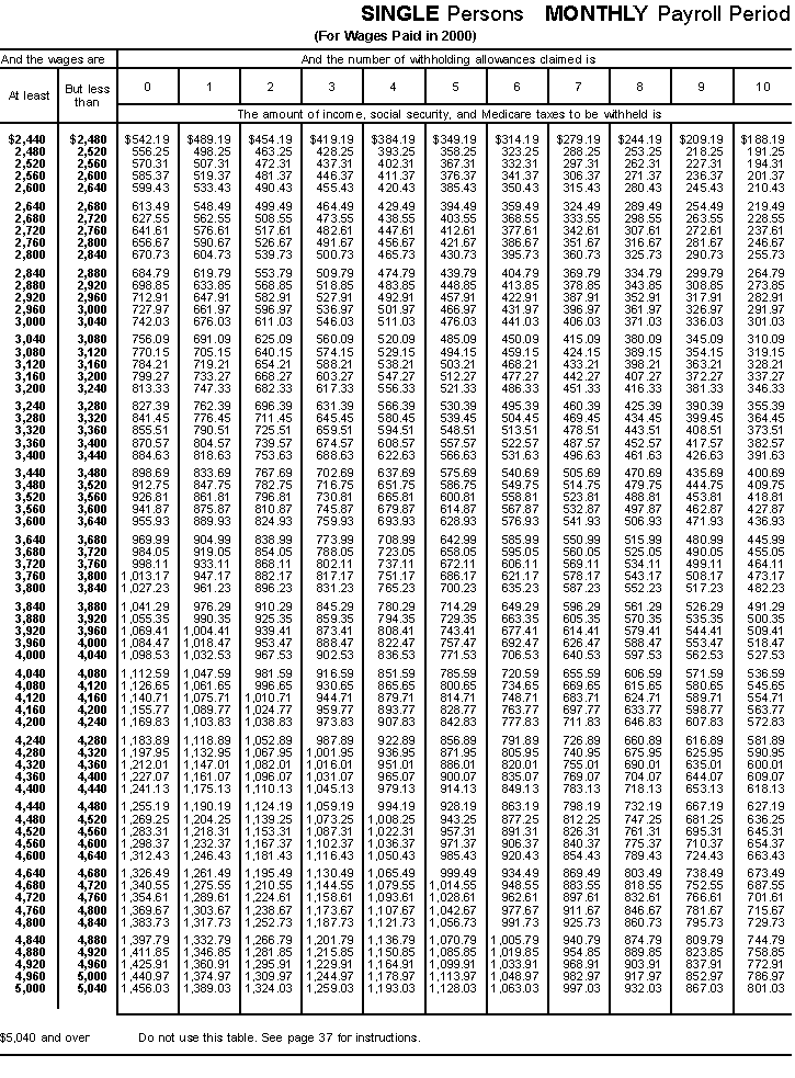 - Single Persons - Monthly, Paid Wages $2440 - $5040