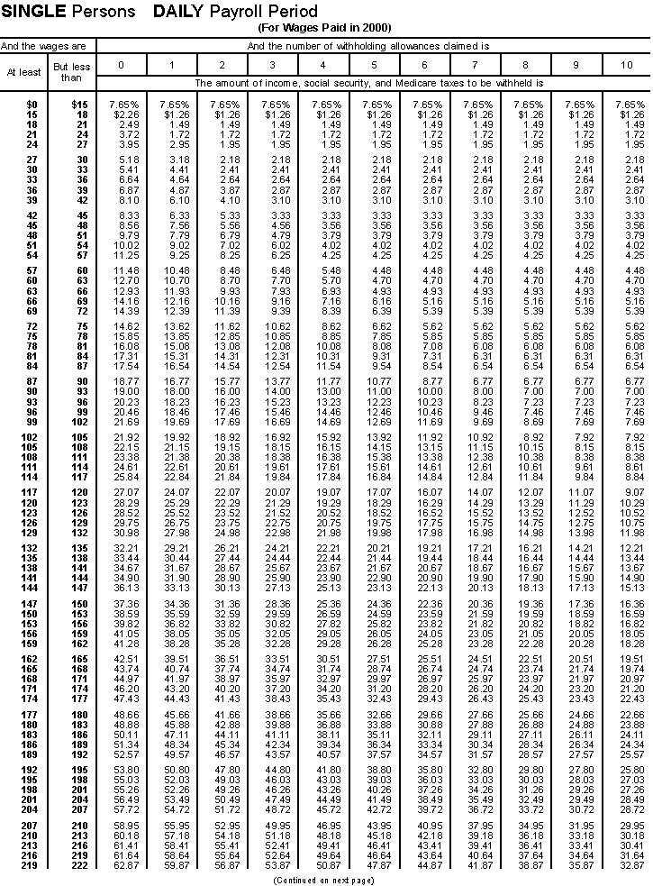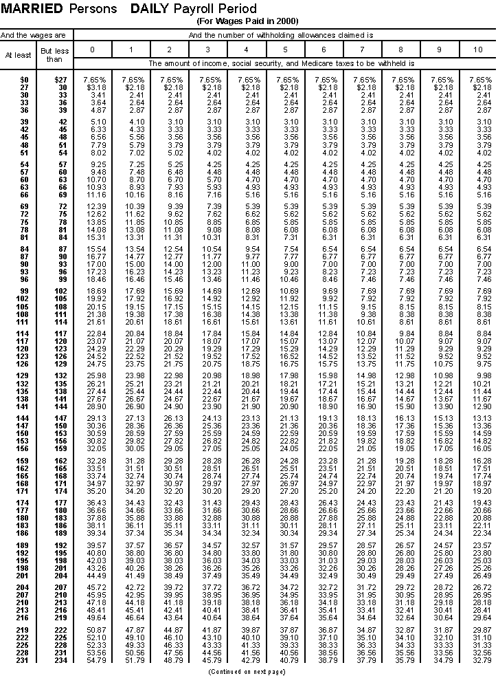 - Married Persons - Daily or Misc., Paid Wages $0 - $234