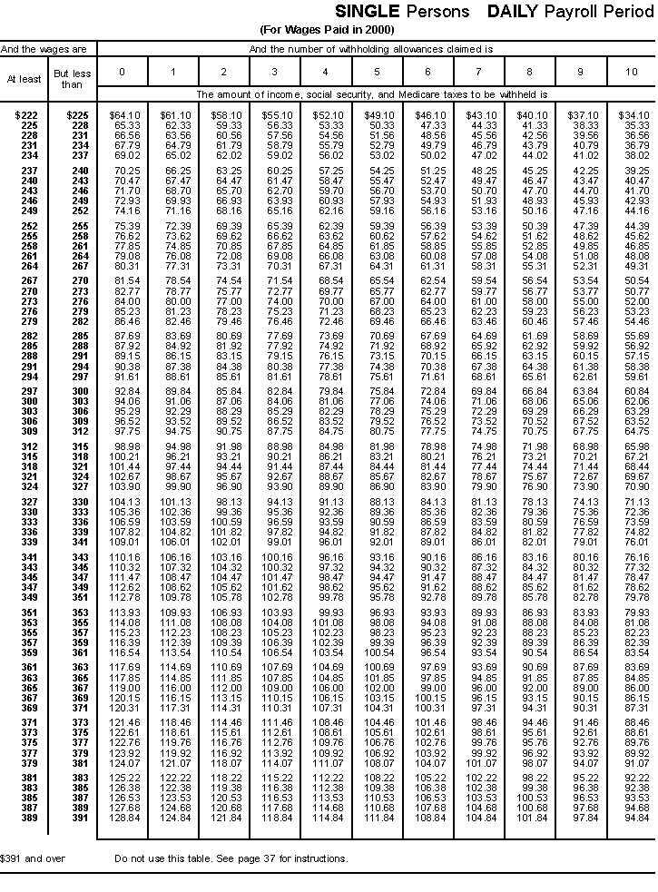 - Married Persons - Daily or Misc., Paid Wages $234 - $399
