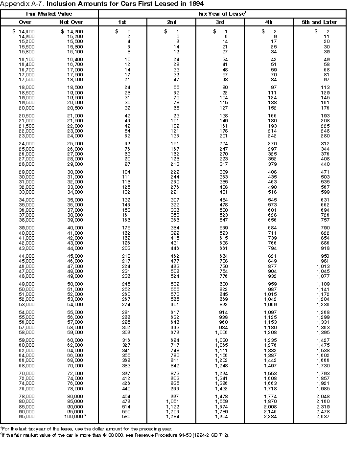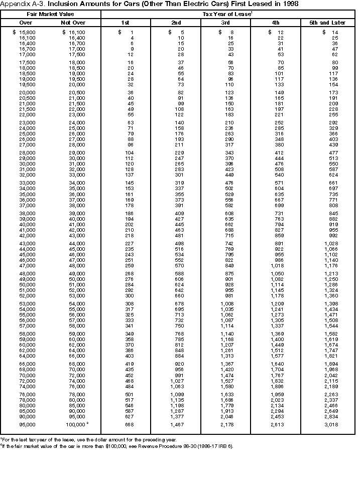 amounts that you may need to report if you lease a car for 30 days or