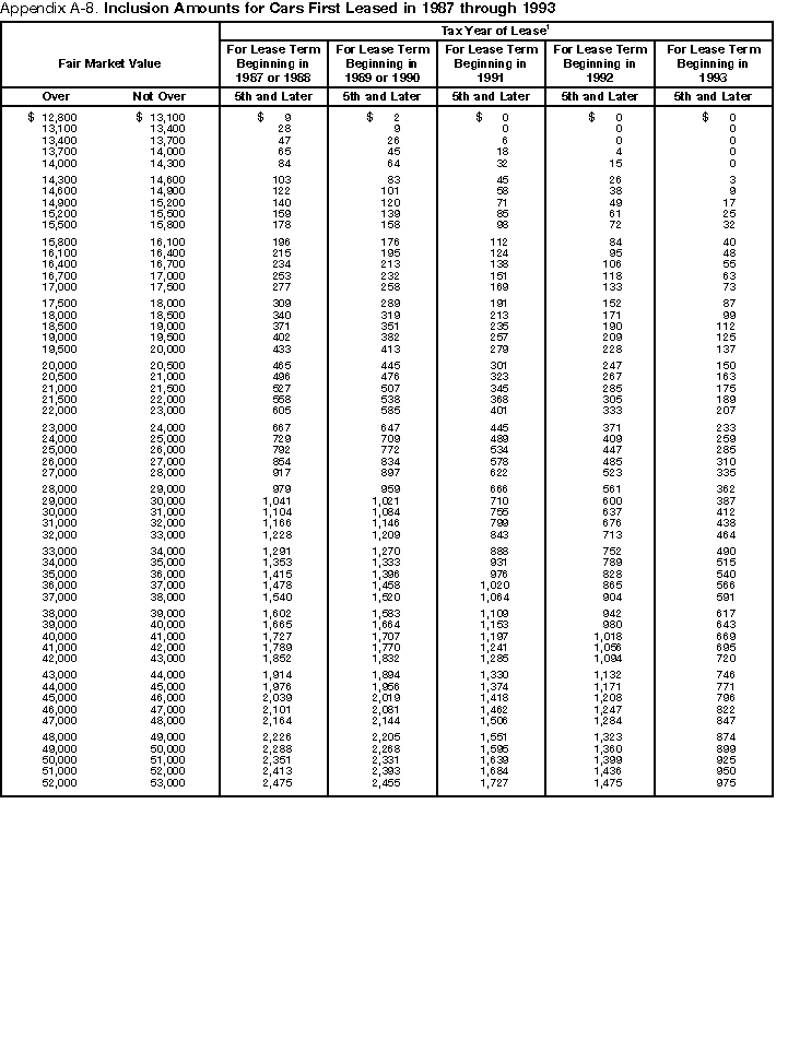 Appendices A-1 through A-8 show the lease inclusion