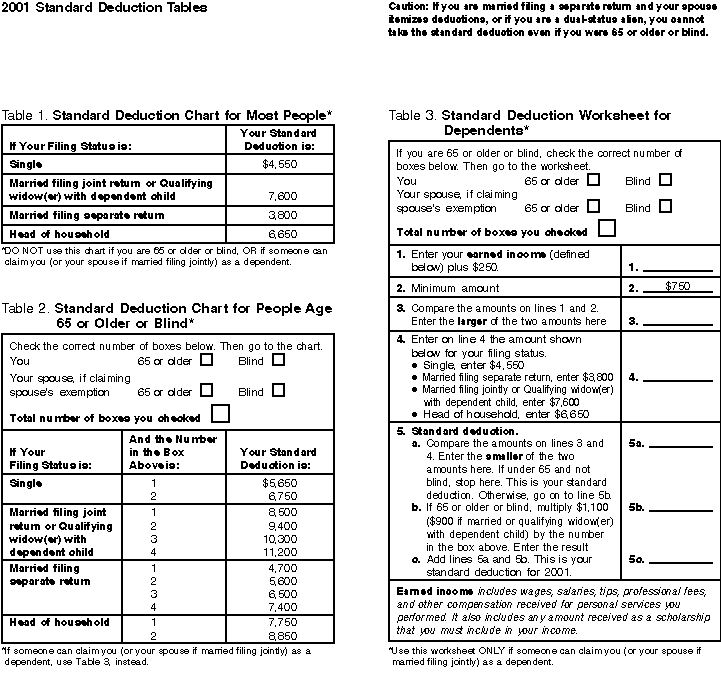 Standard Deduction Tables