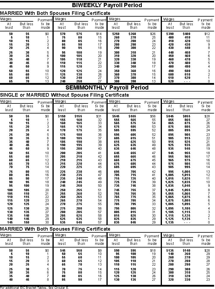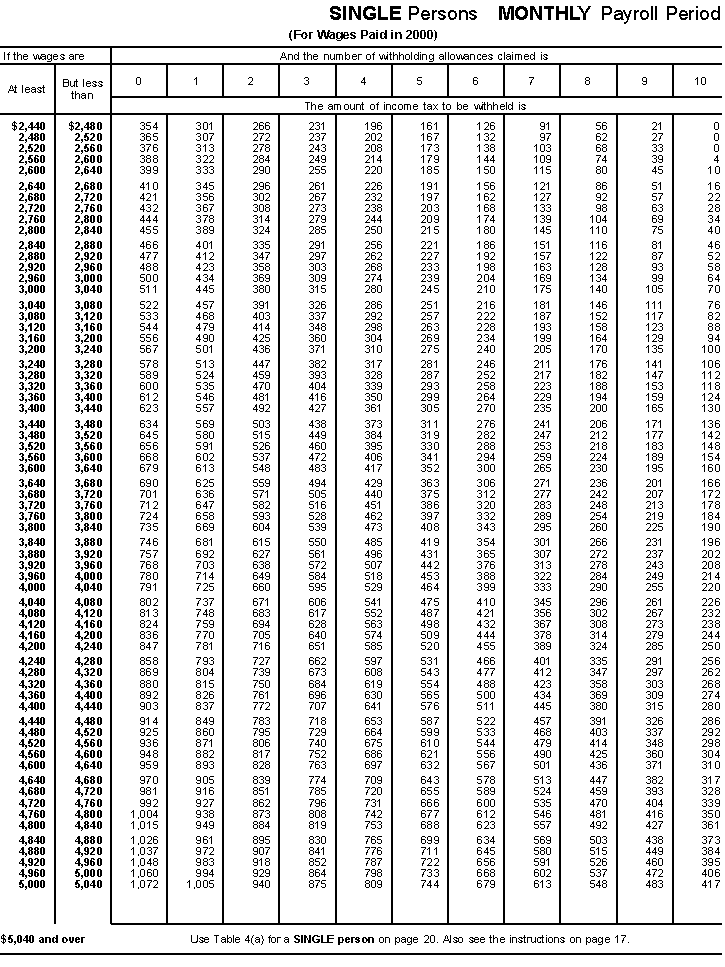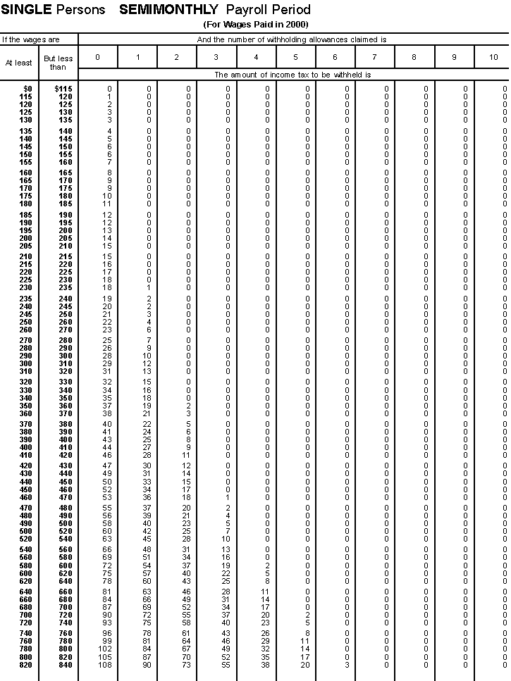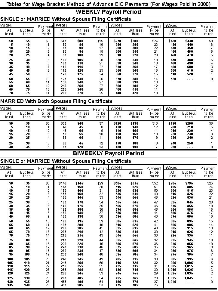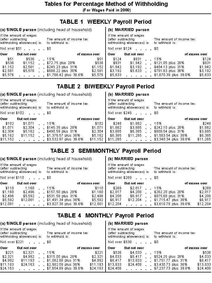 (Including 2001 Wage Withholding and Advance Earned Income Credit Payment Tables)