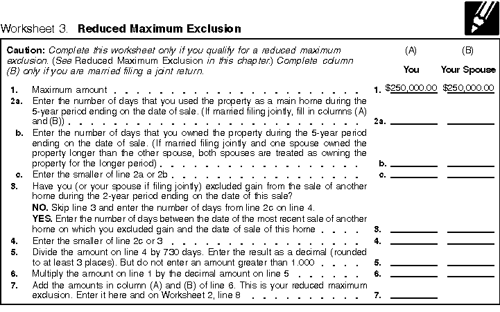 Worksheet 1. Adjusted Basis of Home Sold and Worksheet 2. Gain (or Loss), Exclusion and Taxable Gain