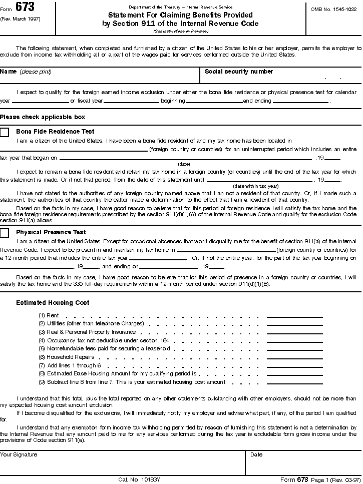 Form 673 is an acceptable statement. You can use Form 673 only if