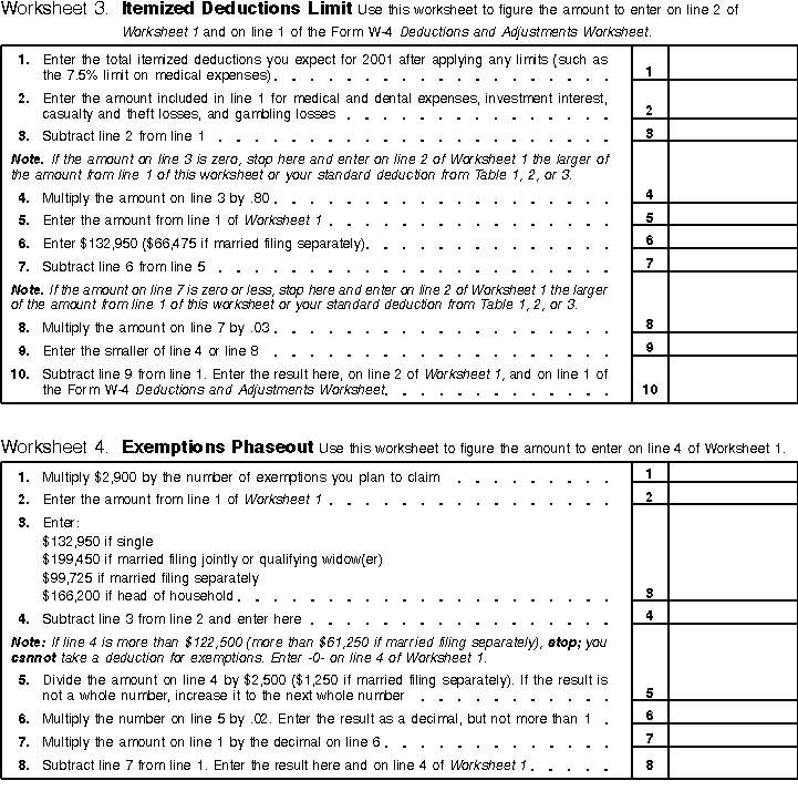 Worksheets 3 and 4 -- Itemized Deductions and Exemptions Phaseout