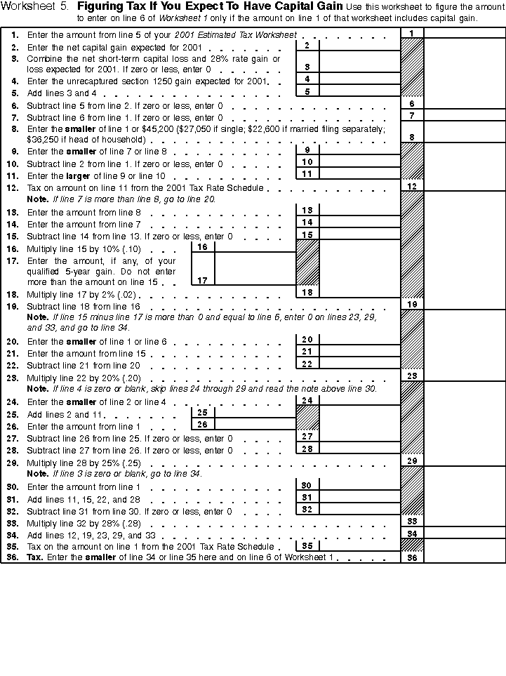 Worksheet 5 --Figuring Tax If You Expect to Have Capital Gain