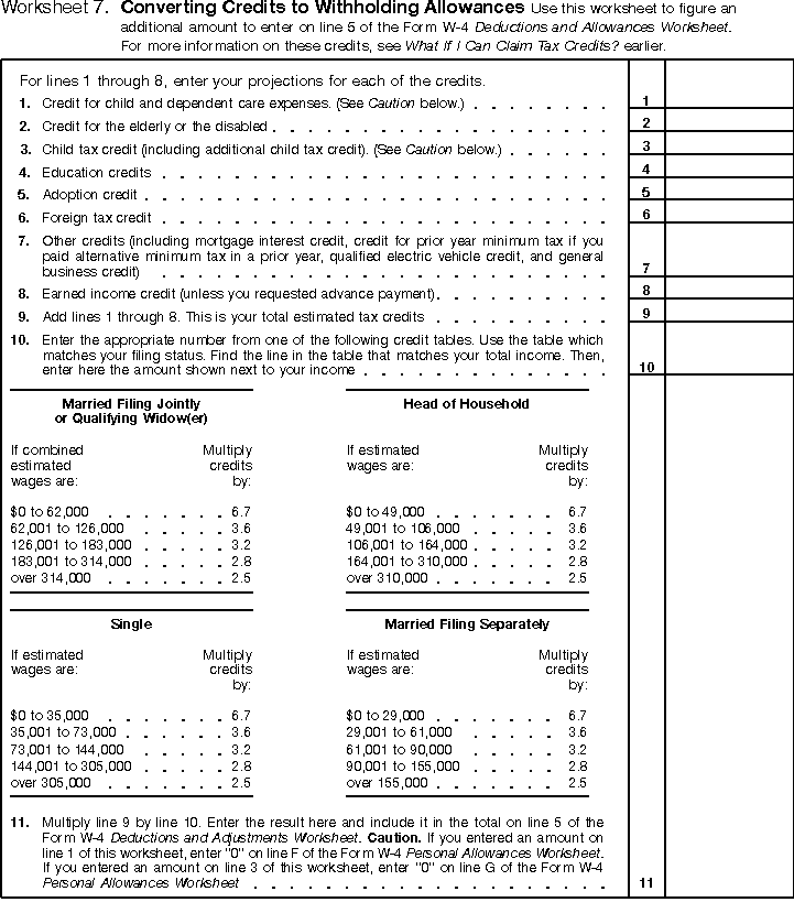 Converting Credits To Withholding Allowances