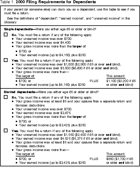 Requirement Worksheet for Dependents Who Are 65 or Older and/or Blind,