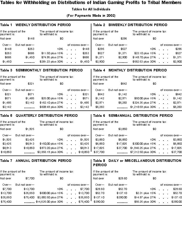 Chapter 11 Tables for Withholding on Distributions of Indian Gaming Profits to Tribal Members