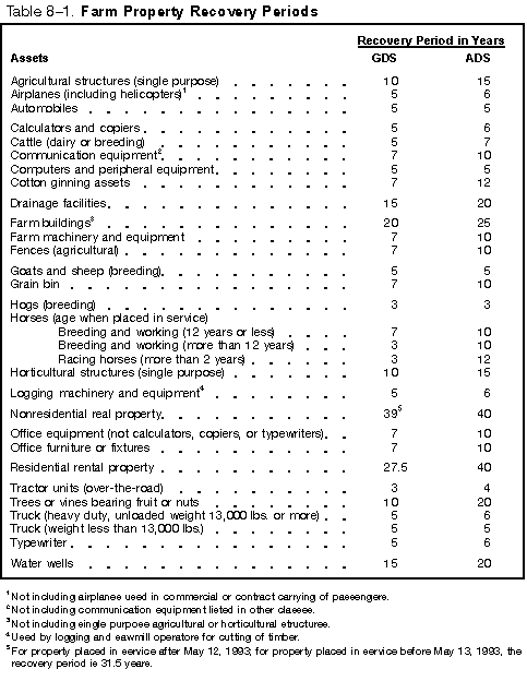 See Table 8-1 for recovery periods under both GDS