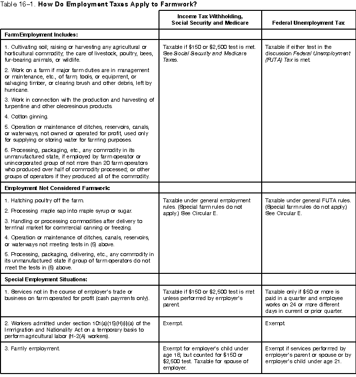 Table 16 - 1. How Do Employment Taxes Apply to Farmwork?