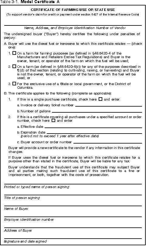 - An unexpired certificate from the buyer for each purchase of kerosene. See Table 3-2.
