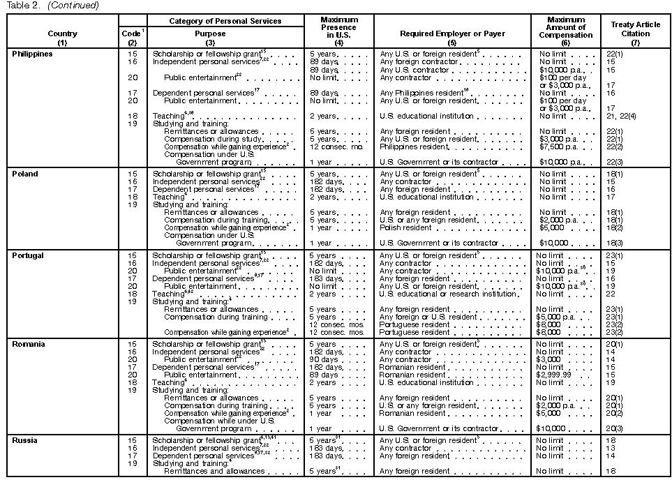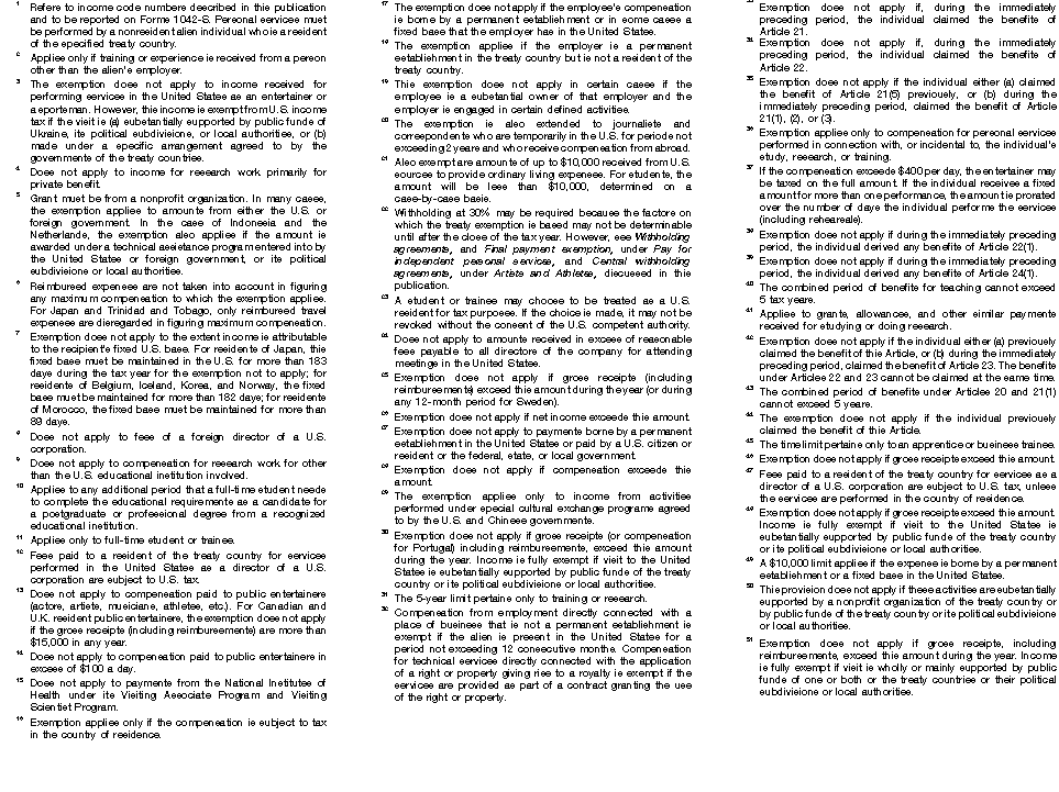 These tables are not meant to be a complete guide to all provisions of every income tax treaty. For detailed information, you must consult the