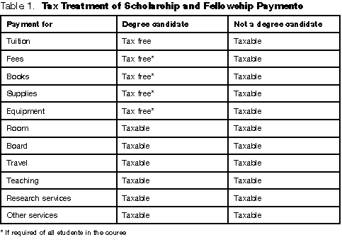 Table 1. Tax Treatment of Scholarship and Fellowship Payments