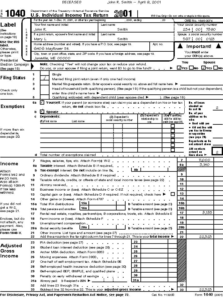 for the period during which he lived. (You determine that he timely filed his 2000 income tax return before he died.) The final return is not due