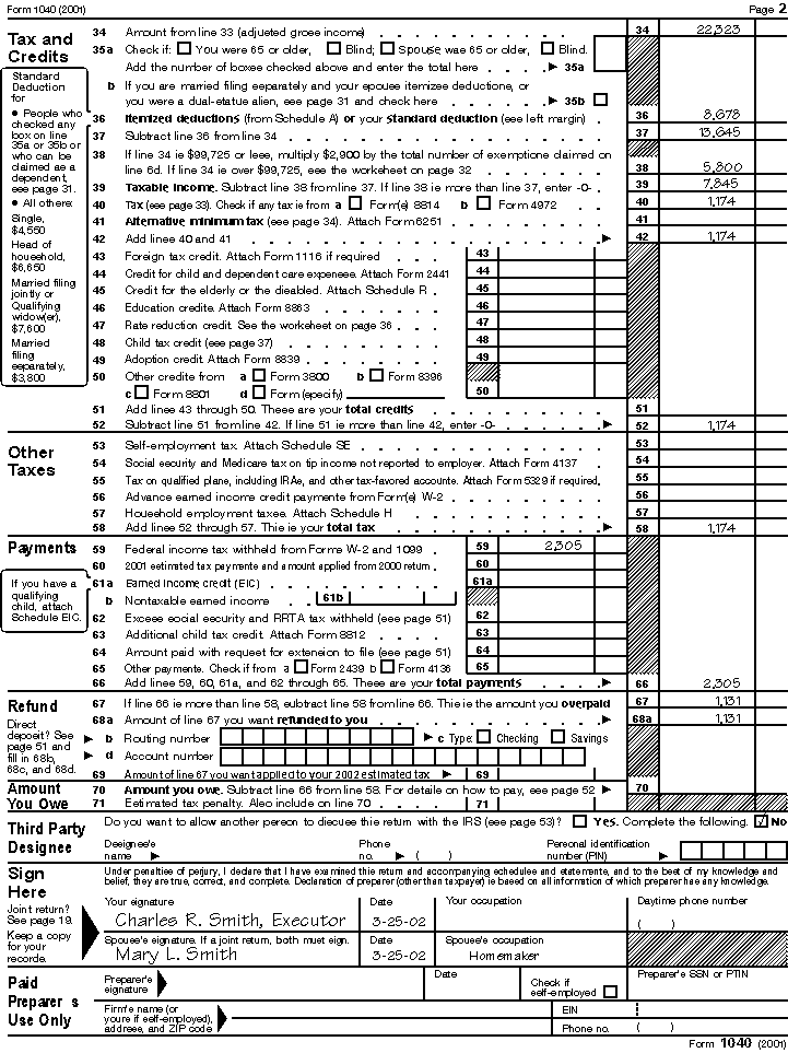 $600, so you must file an income tax return, Form 1041, for 2002 (not shown). The estate's gross income for 2002 is $850 (dividends $500 and interest