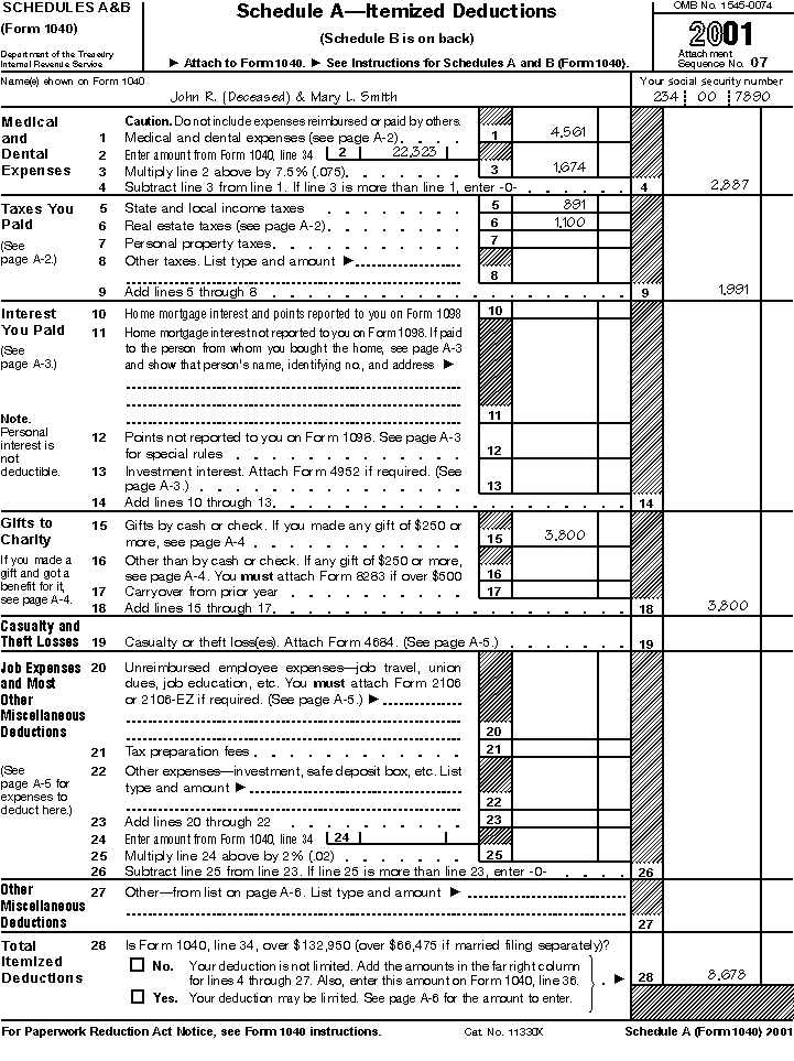 were presented. In addition, you find other bills from his doctors totaling $185 that your father paid in 2001 and receipts for prescribed drugs he