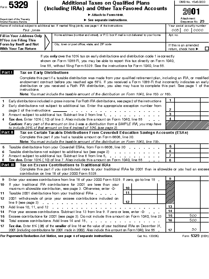 "2001 Form 5329" on your check or money order.