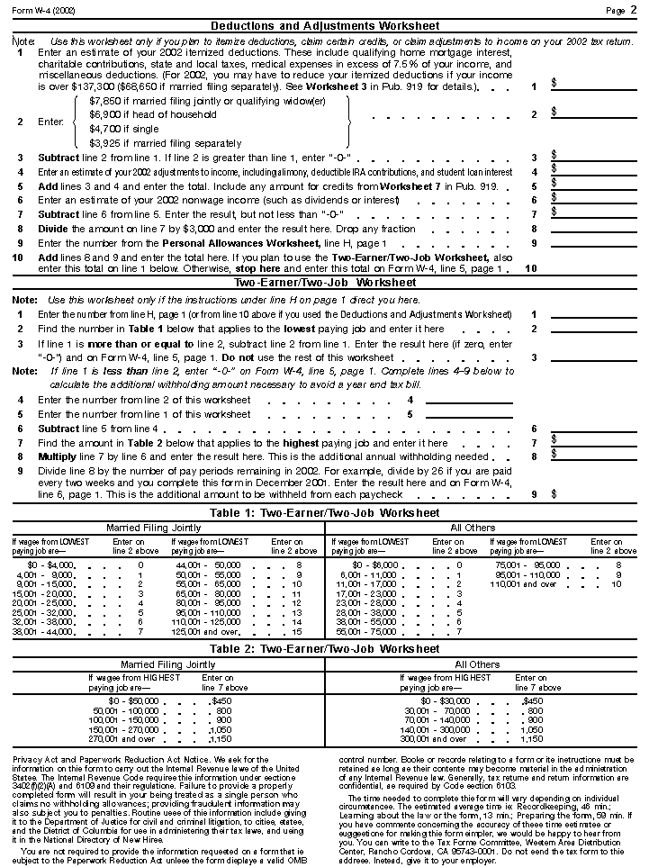 blank Form W-4 page 2