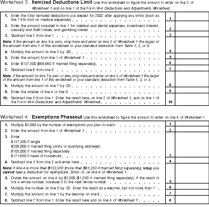 Worksheets 3 and 4 - Itemized Deductions and Exemptions Phaseout