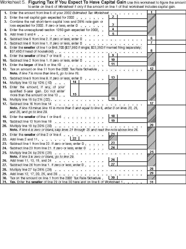 Worksheet 5 - Figuring Tax If You Expect to Have Capital Gain