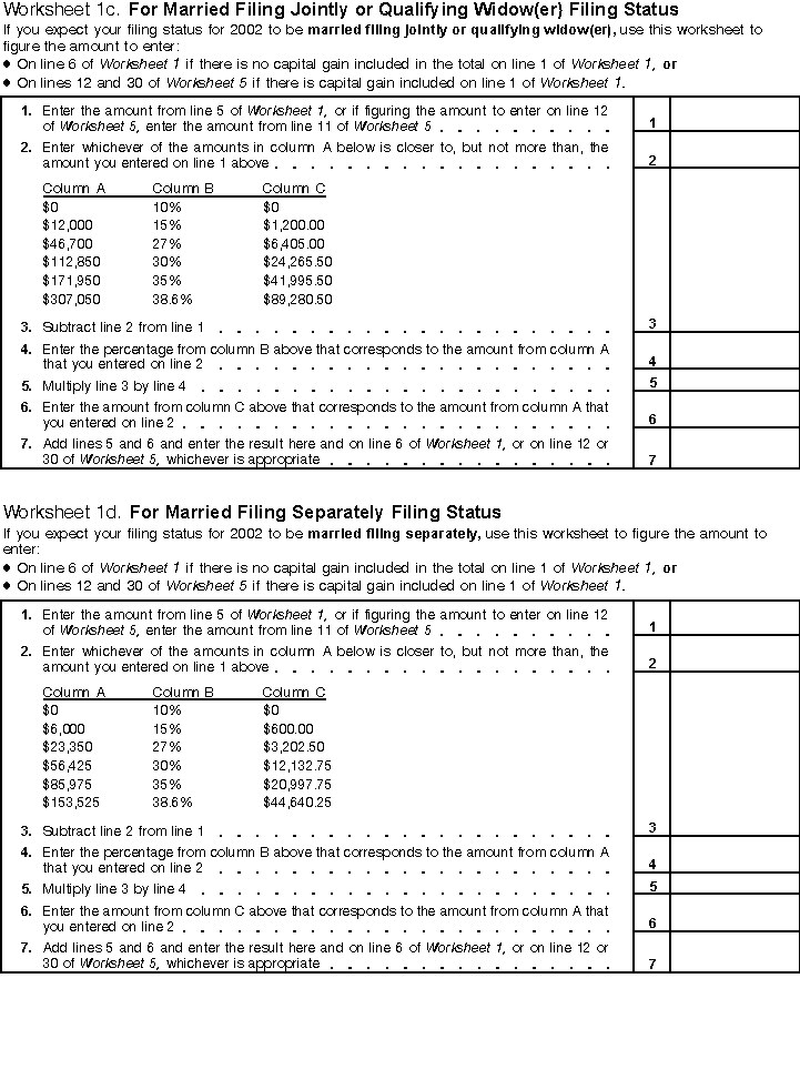 Worksheets 1c and 1d Tax Rate Schedules for MFJ and MFS