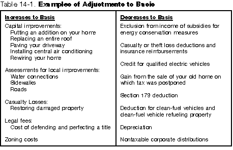 Improvements. Add the cost of improvements to your basis in the property if they increase the value of property, lengthen its life, or adapt it to a different use. For example, improvements include putting a recreation room in your unfinished basement, adding another bathroom or bedroom, putting up a fence, putting in new plumbing or wiring, installing a new roof, or paving your driveway.