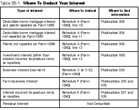 Table 25-1. Where To Deduct Your Interest