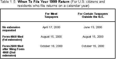 In most cases, for a 1999 return, this will be April 17, 2000. See