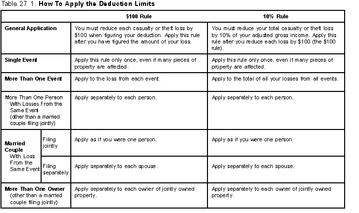 These rules are explained next, and Table 27-1 summarizes how to apply the $100 rule and the 10% rule in various situations. For more detailed explanations and examples, see Publication 547.