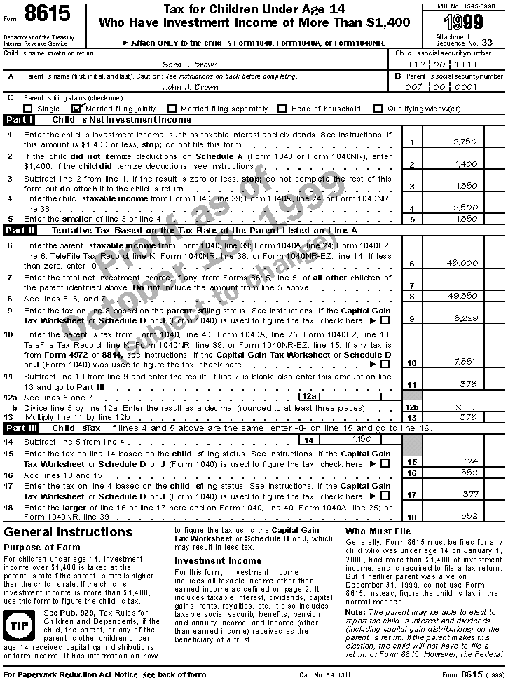 The following example includes a completed Form 8615.