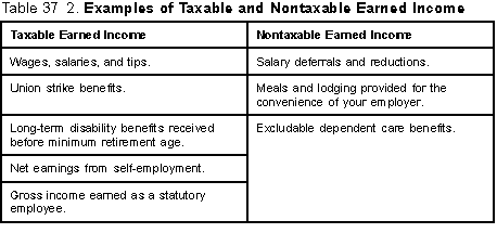 Table 37-2. Examples of Taxable and Nontaxable Earned Income