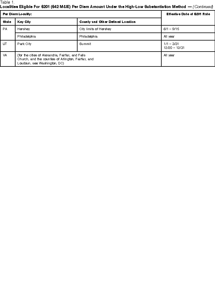 Localities Eligible for $201 ($42 M & IE) Per Diem Amount Under the High-low Substantiation Method (page 2)
