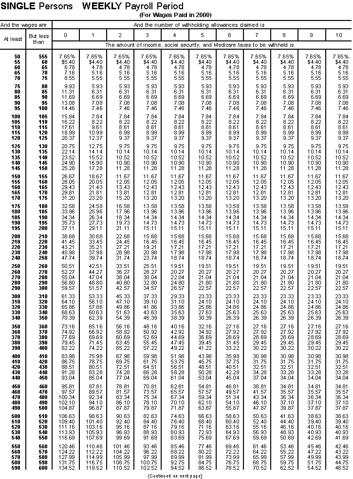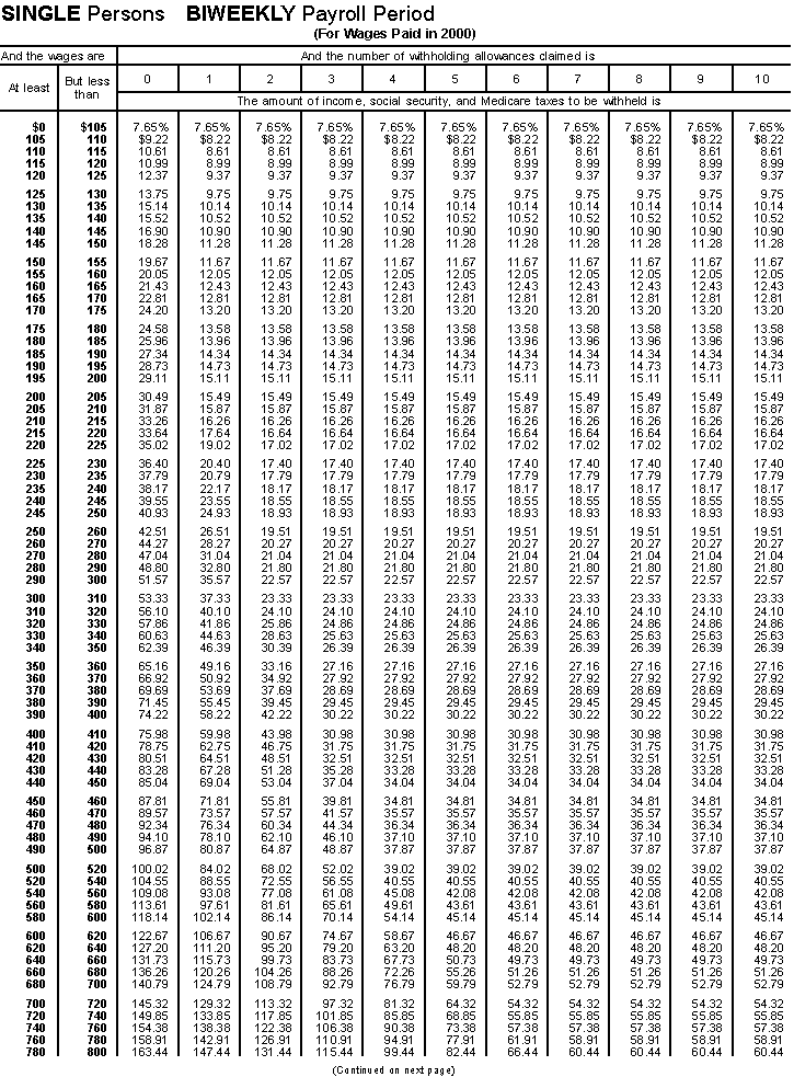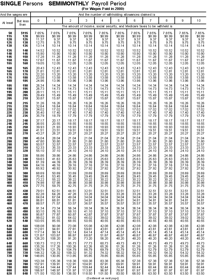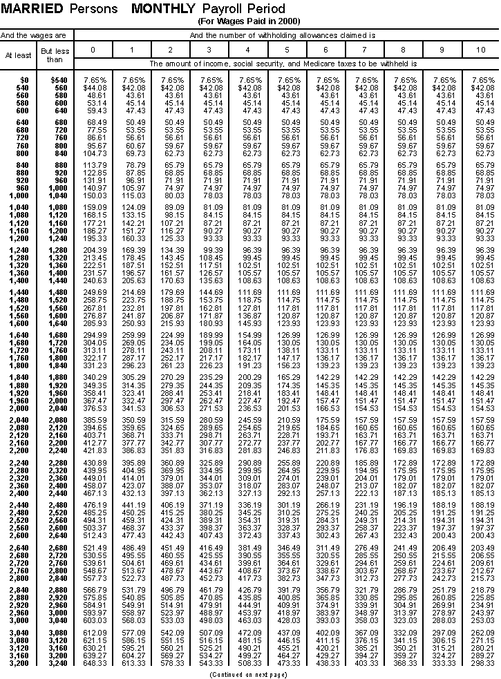 The combined tables give the correct total withholding only if wages for social security and Medicare taxes and income tax withholding are the same. When you have paid more than the maximum amount of wages subject to social security tax ($80,400 in 2001) in a calendar year, you may no longer use the combined tables.