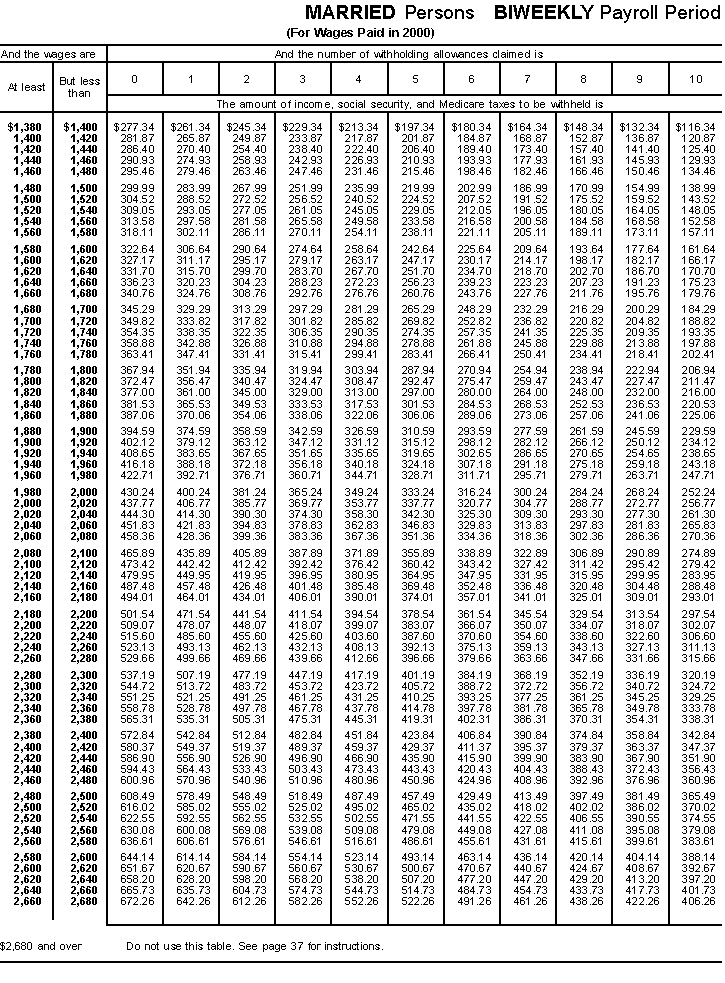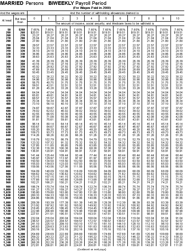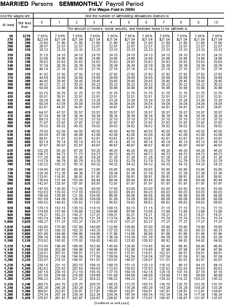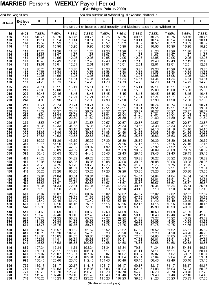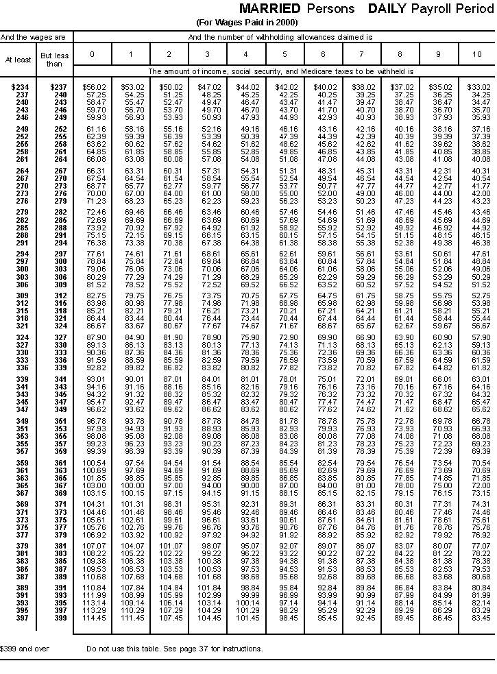 The combined tables give the correct total withholding only if wages for social security and Medicare taxes and income tax withholding are the same. When you have paid more than the maximum amount of wages subject to social security tax ($80,400 in 2001) in a calendar year, you may no longer use the combined tables.