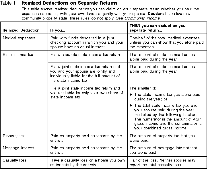 files a separate return and itemizes deductions.