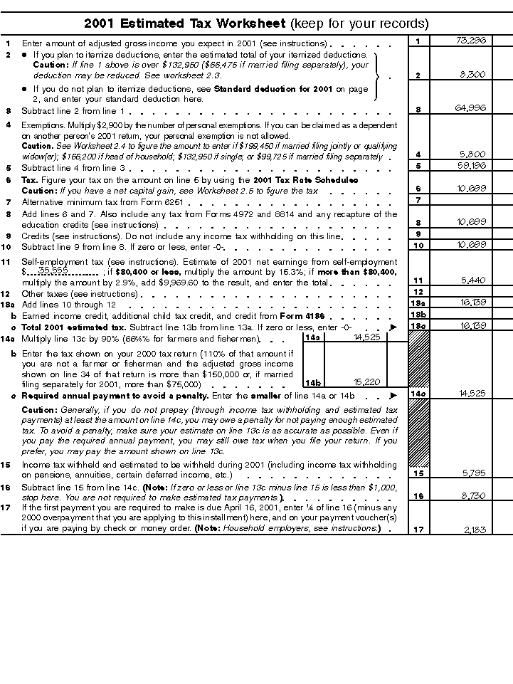 line 14c of the 2001 Estimated Tax Worksheet). Because