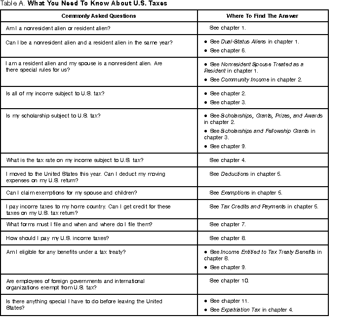 Table A, What You Need To Know About U.S. Taxes,