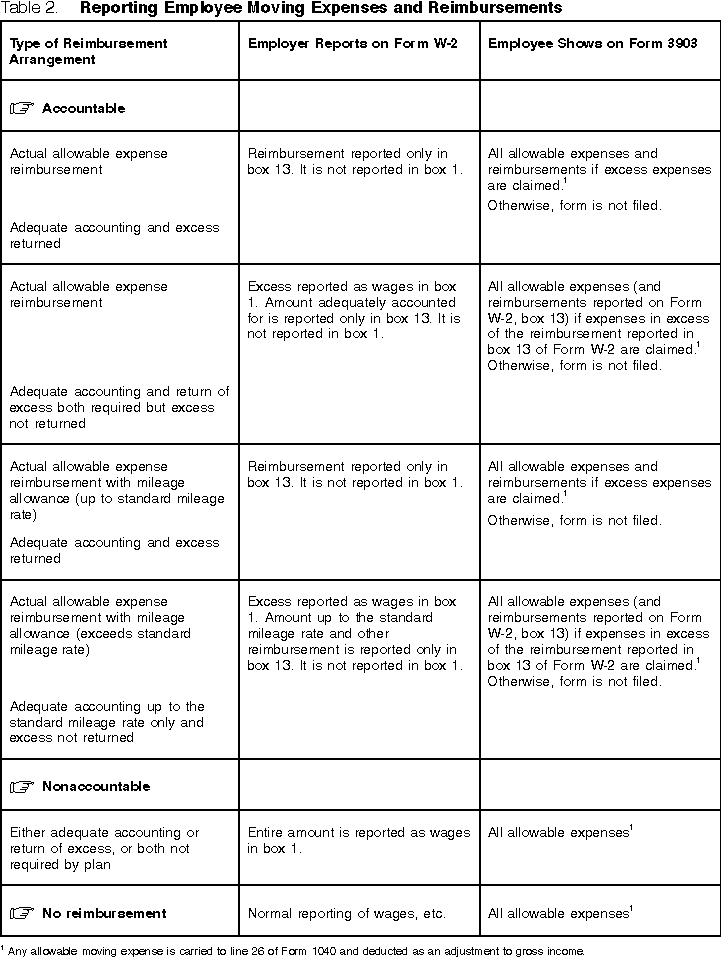 Table 2. Reporting Employee Moving Expenses and Reimbursements