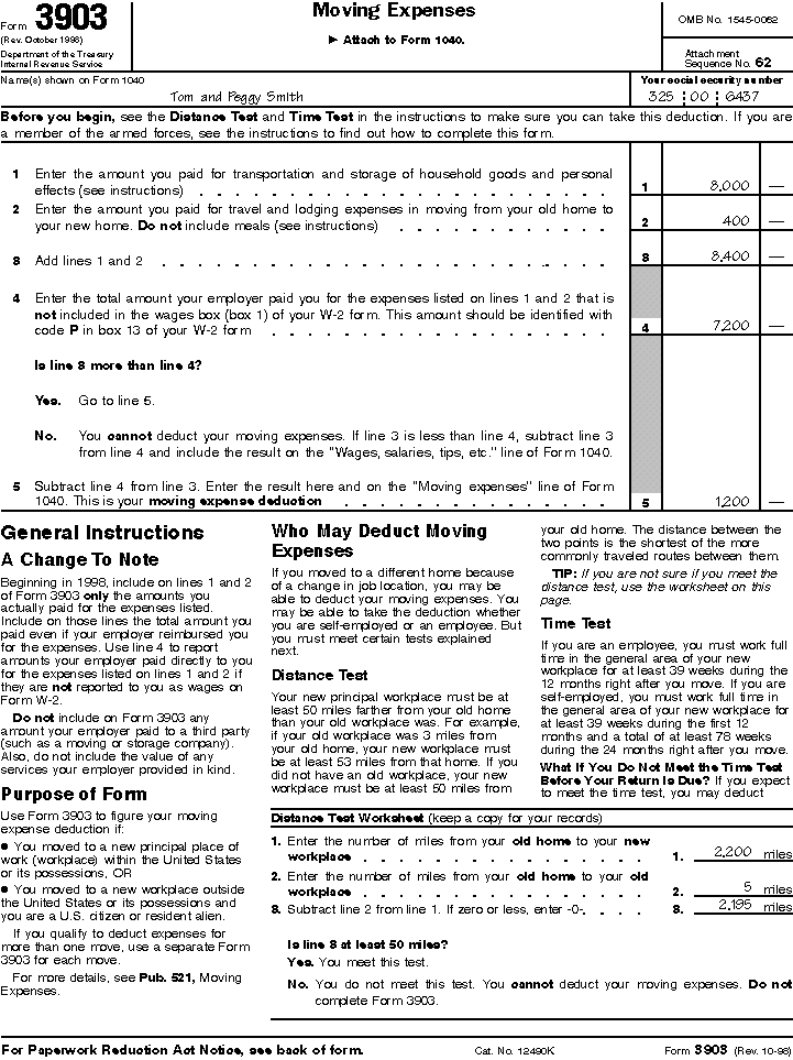 Tom enters these amounts on Form 3903 to figure his deduction. His