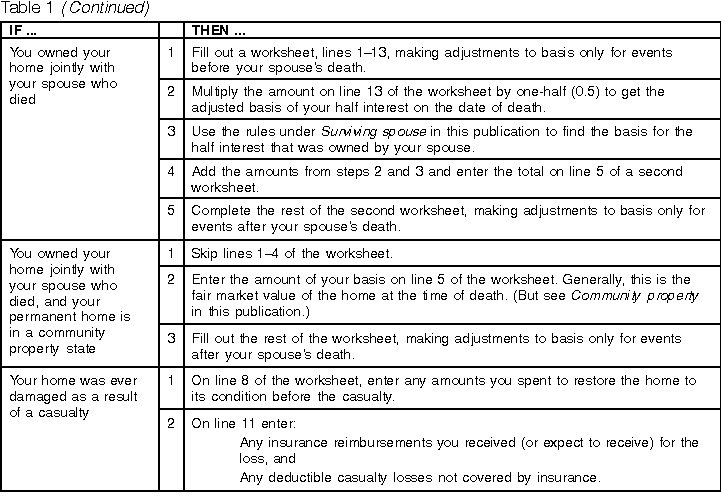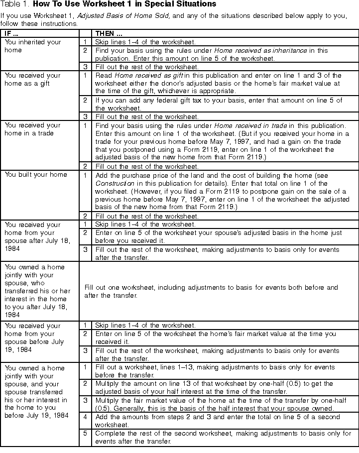 Table 1. How to Use the Adjusted Basis of Home Sold Worksheet in Special Situations