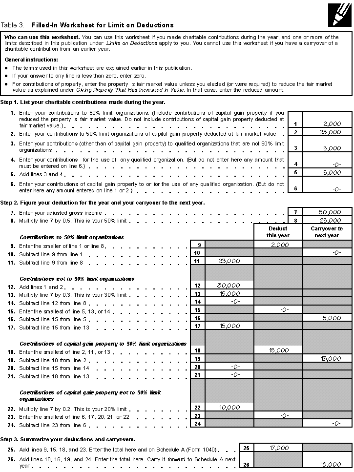 the property was $20,000. Your deduction was limited to $15,000 (30%