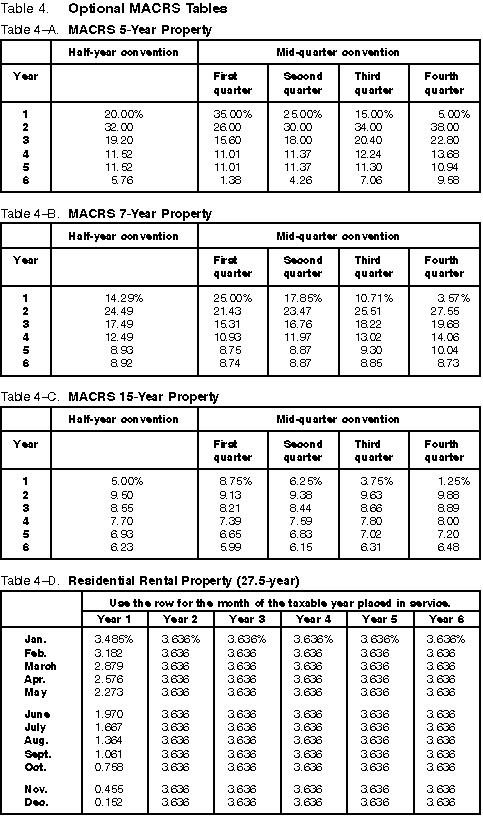If you elect to use the straight line method for 5-, 7-, or 15-year