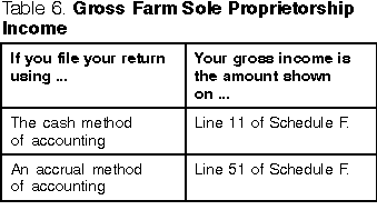 following table to determine your gross farm income.