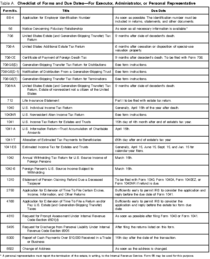 Checklist of Forms and Due Dates