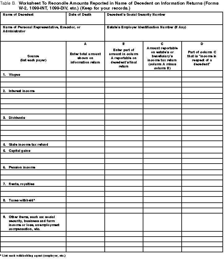 Worksheet To Reconcile Amounts Reported in Name of Decedent on Information Returns